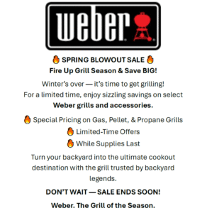 Stop by and check out our selection of Weber and Broil King BBQs! We’re also a BEAM central vacuum system dealer, and we can also hook you up with a Valor or Regency fireplace. If you have a pool, you’ll find Lawson’s pool salts, filter cleaners, and cold clean water cleansers on our shelves.